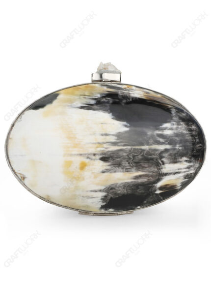 Oval Buffalo Horn Clutch with Sugarstone Knob – Silver-Tone Frame | Wholesale & OEM Supply