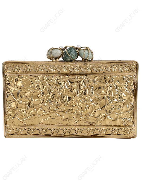 Double-Sided Mother of Pearl Clutch with Gemstone-Embellished Brass Ring Handle | Wholesale & Export Supply