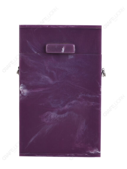 Purple Vertical Resin Box Clutch with Marble Texture and Rectangular Knob, Detachable Silver-Tone Chain | Wholesale / OEM / Export