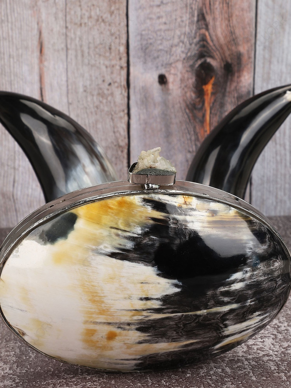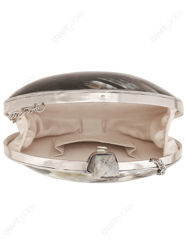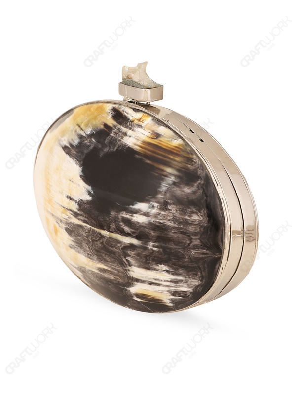 Oval Buffalo Horn Clutch with Silver-Tone Frame for Wholesale Buyers