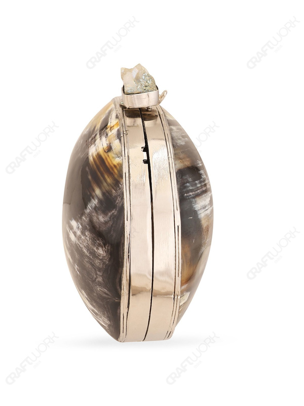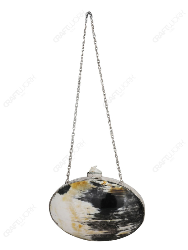 Oval Buffalo Horn Clutch with Sugarstone Knob – Silver-Tone Frame | Wholesale & OEM Supply