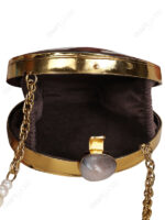 Mini Black-Lip Oyster Shell Round Minaudière with 14k Gold Electroplated Brass Frame & Gemstone Clasp – Wholesale & Export