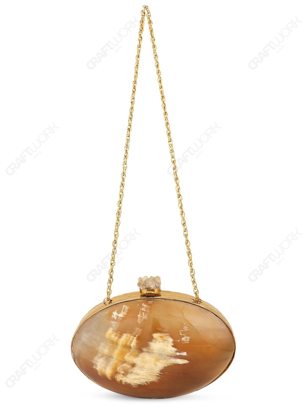 Oval Buffalo Horn Clutch with Sugarstone-Style Crystal Knob – Gold-Tone Frame | Wholesale & OEM Supply