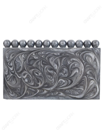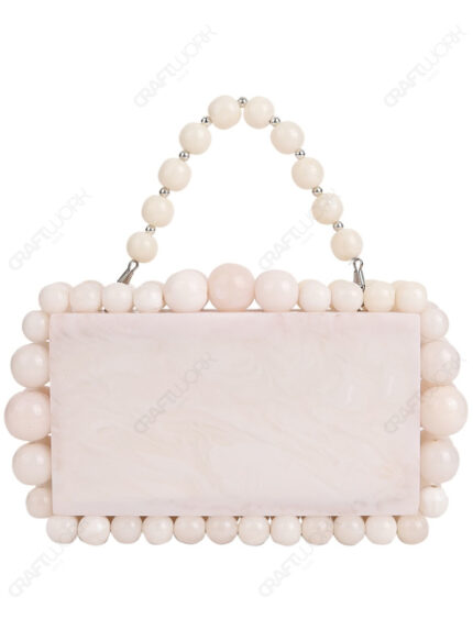 Ivory Marble-Effect Resin Clutch with 75-Bead Frame and Detachable Beaded Top Handle | Wholesale / OEM