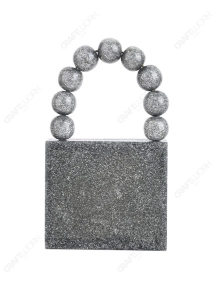 Gold Glitter Mini Square Resin Clutch with Beaded Top Handle & Detachable Chain Strap | Wholesale / OEM / Export