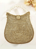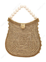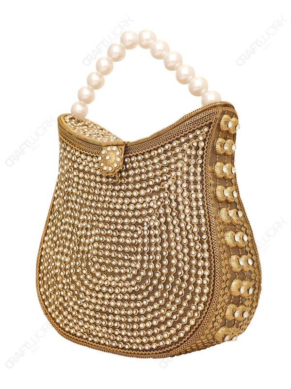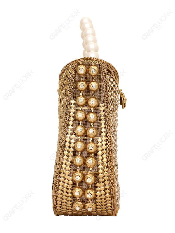Gold Crystal Filigree Clutch with Pearl Handle for Wholesale Buyers