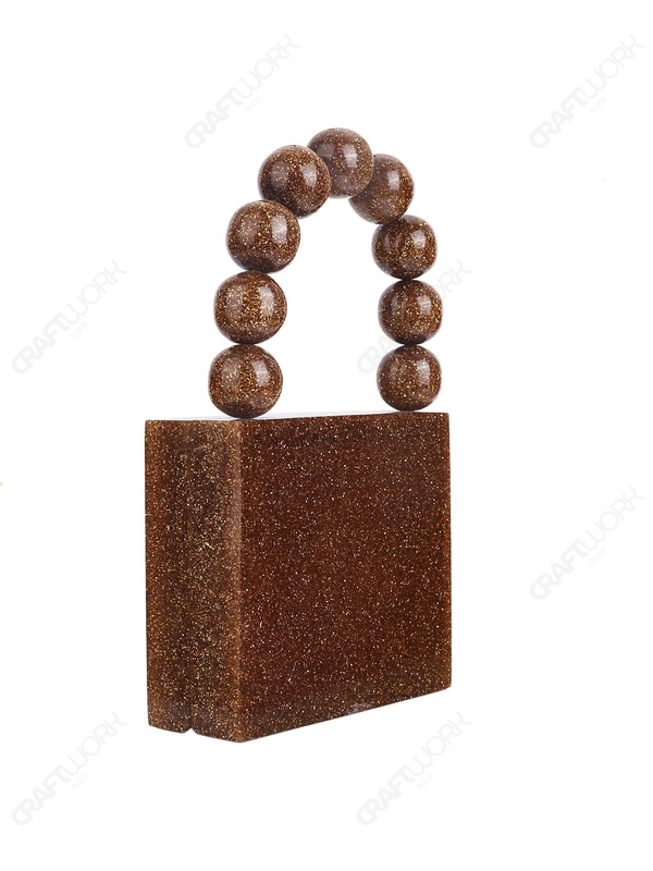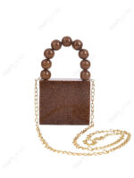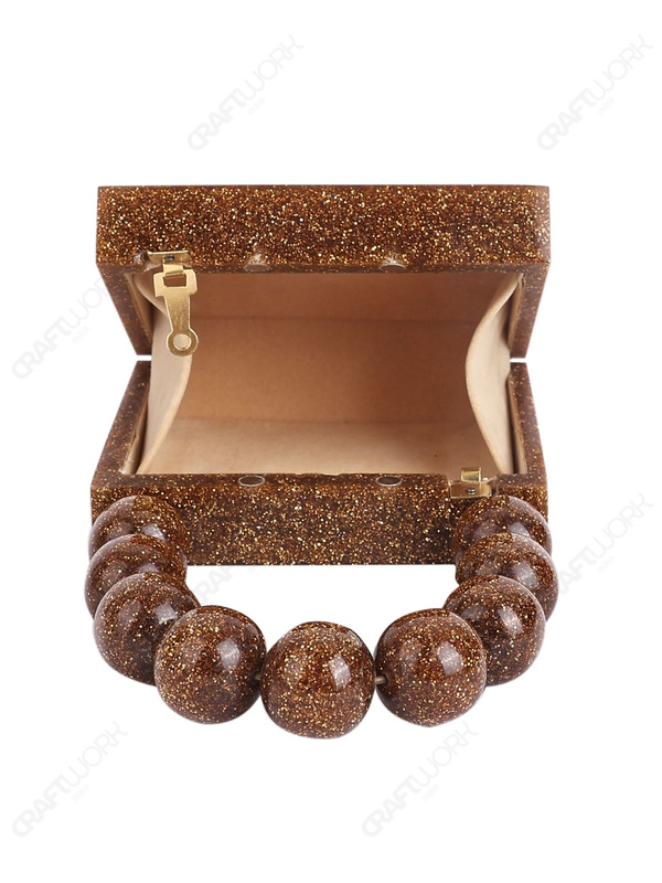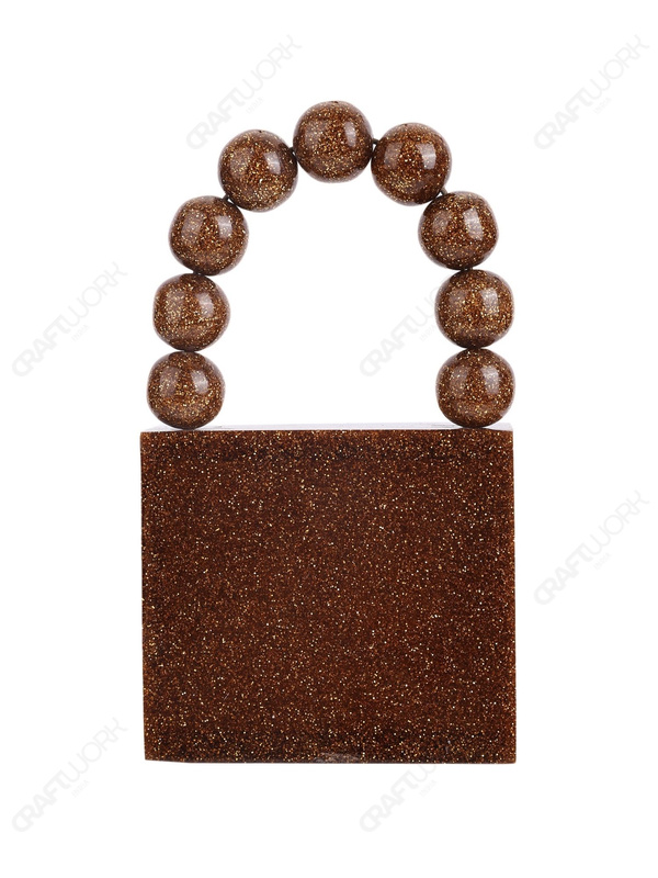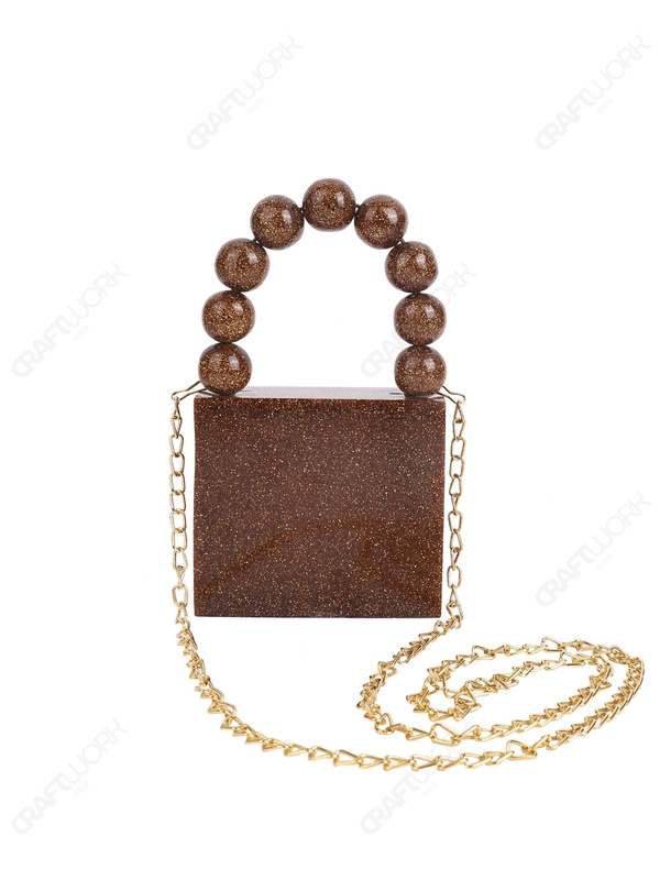 Gold Glitter Mini Square Resin Clutch with Beaded Top Handle & Detachable Chain Strap | Wholesale / OEM / Export