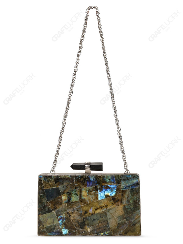 Labradorite Mosaic Hard-Case Clutch for Wholesale & Export Supply