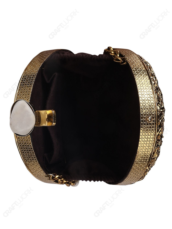 Natural Pearl Clam Shell Handbag with 14k Gold Electroplated Brass Frame & Detachable Chain Handle – Export & Wholesale