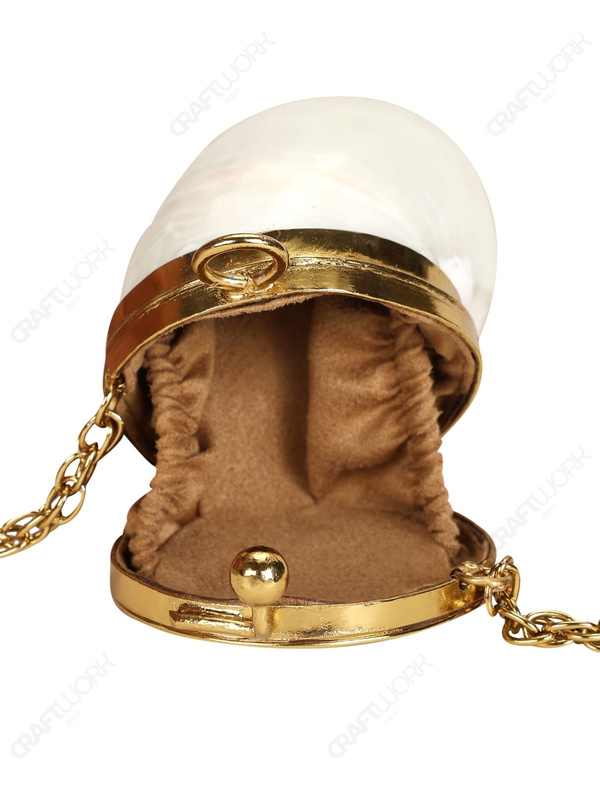 Mini Pearl Turbo Shell Coin Purse with Mother-of-Pearl Inlay Top & 14k Gold Electroplated Brass Frame – Wholesale & Export