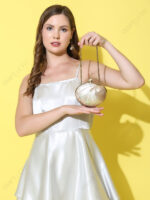 White Marble-Look Resin Ring-Edge Clutch with Gold-Tone Top Knob & Detachable Chain Strap | Wholesale OEM Export