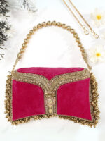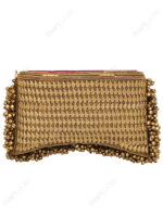 Along the sides and curved base, the clutch is finished with hand-threaded bell fringe detailing, creating texture, movement, and a distinctive handcrafted identity. This edge treatment can be produced consistently across bulk orders, subject to material availability and MOQ.