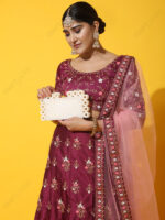 The perimeter ring elements are not treated as a handle feature; they act as a bold architectural frame that changes the clutch’s outline and perceived value. This makes the piece suitable for curated collections where buyers want a recognizable shape that can anchor a small capsule of evening or occasion styles.