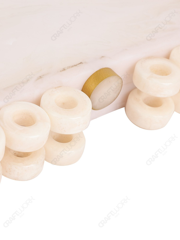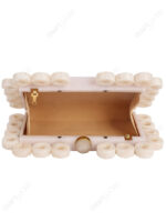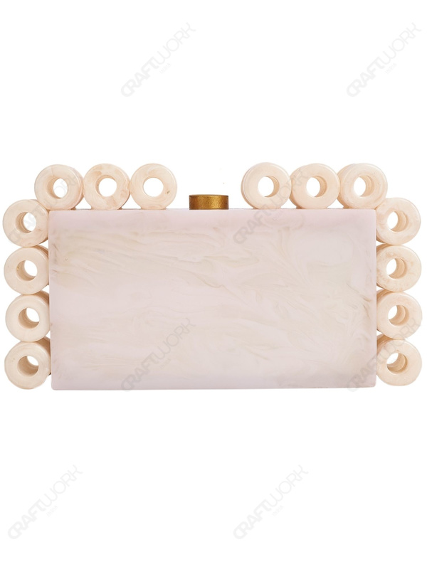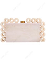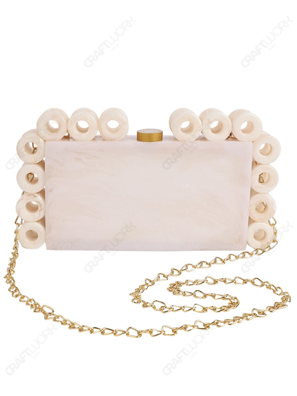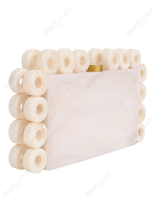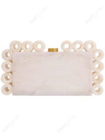 White Marble-Look Resin Ring-Edge Clutch with Gold-Tone Top Knob & Detachable Chain Strap | Wholesale OEM Export