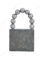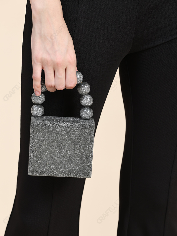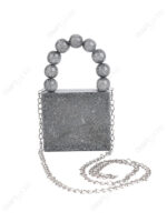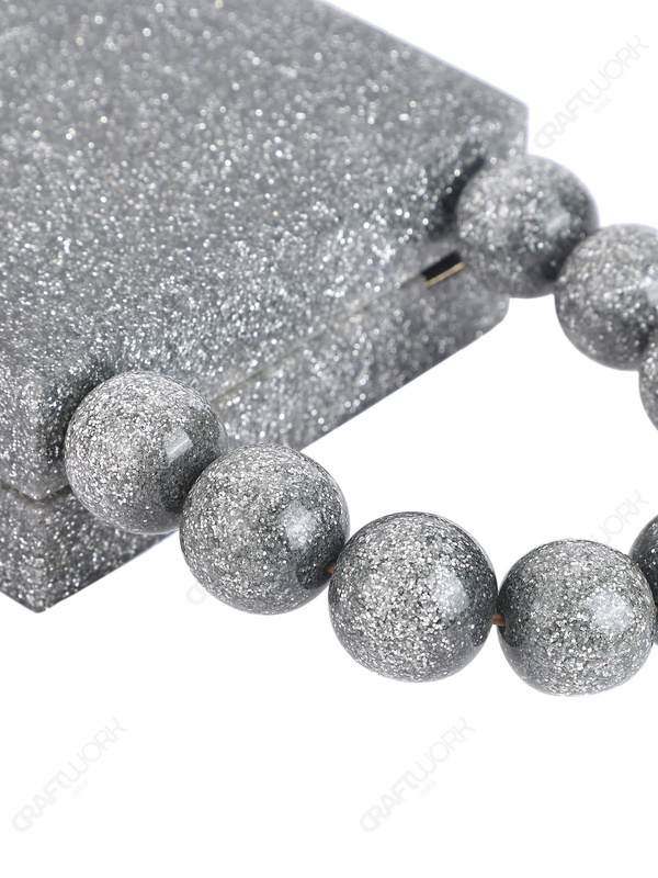 Silver Glitter Mini Square Resin Clutch with Fixed 9-Bead Top Handle and Detachable Chain Strap | Wholesale / OEM