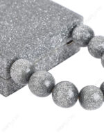 Compact hard-case resin clutch developed for boutique and occasionwear programs, finished in a high-impact silver glitter surface with a fixed beaded top handle and detachable chain strap. Built for consistent wholesale replenishment and private-label/OEM customization across export markets.
