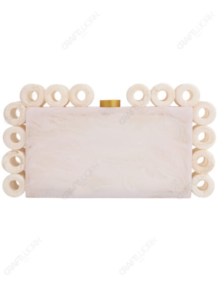 White Marble-Look Resin Ring-Edge Clutch with Gold-Tone Top Knob & Detachable Chain Strap | Wholesale OEM Export