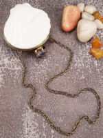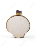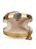 Lion’s Paw Scallop Shell Mini Hard-Case Clutch with Raw Amethyst Knob | Gold-Plated Brass Frame | Wholesale & OEM Supply