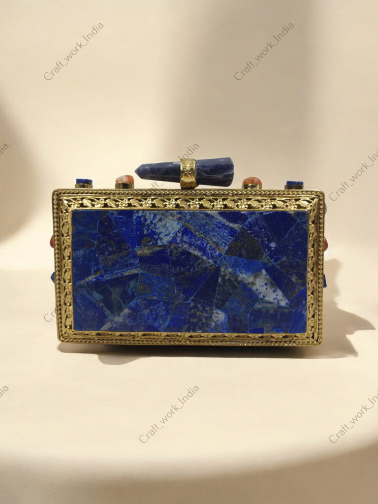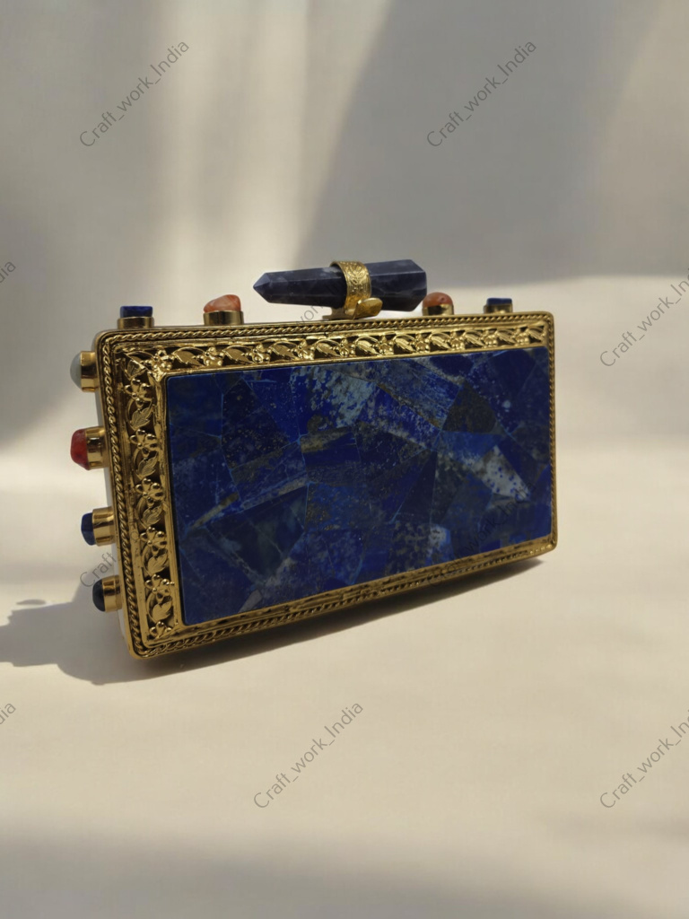 Lapis Lazuli Gemstone Handbag: Gold Frame, Quartz Knob, Rare, Bulk Supply