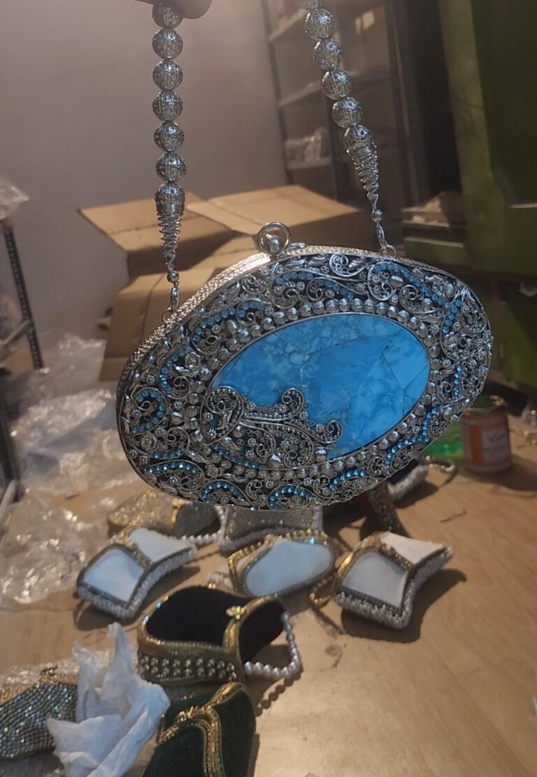 Turquoise Gemstone Bridal Bag: Silver Filigree, Antique, Bulk