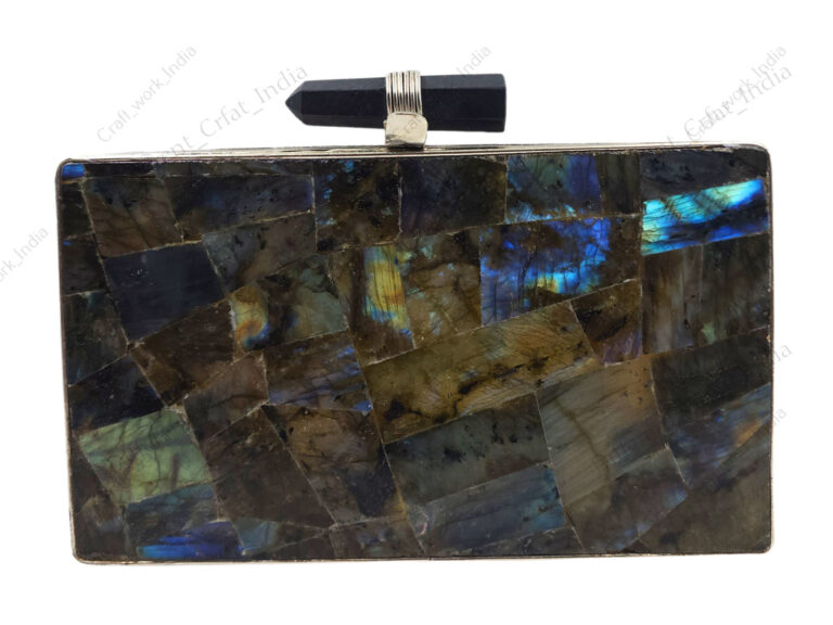 Labradorite Gemstone Clutch: Silver Frame, Quartz Knob, Natural, Bulk Orders